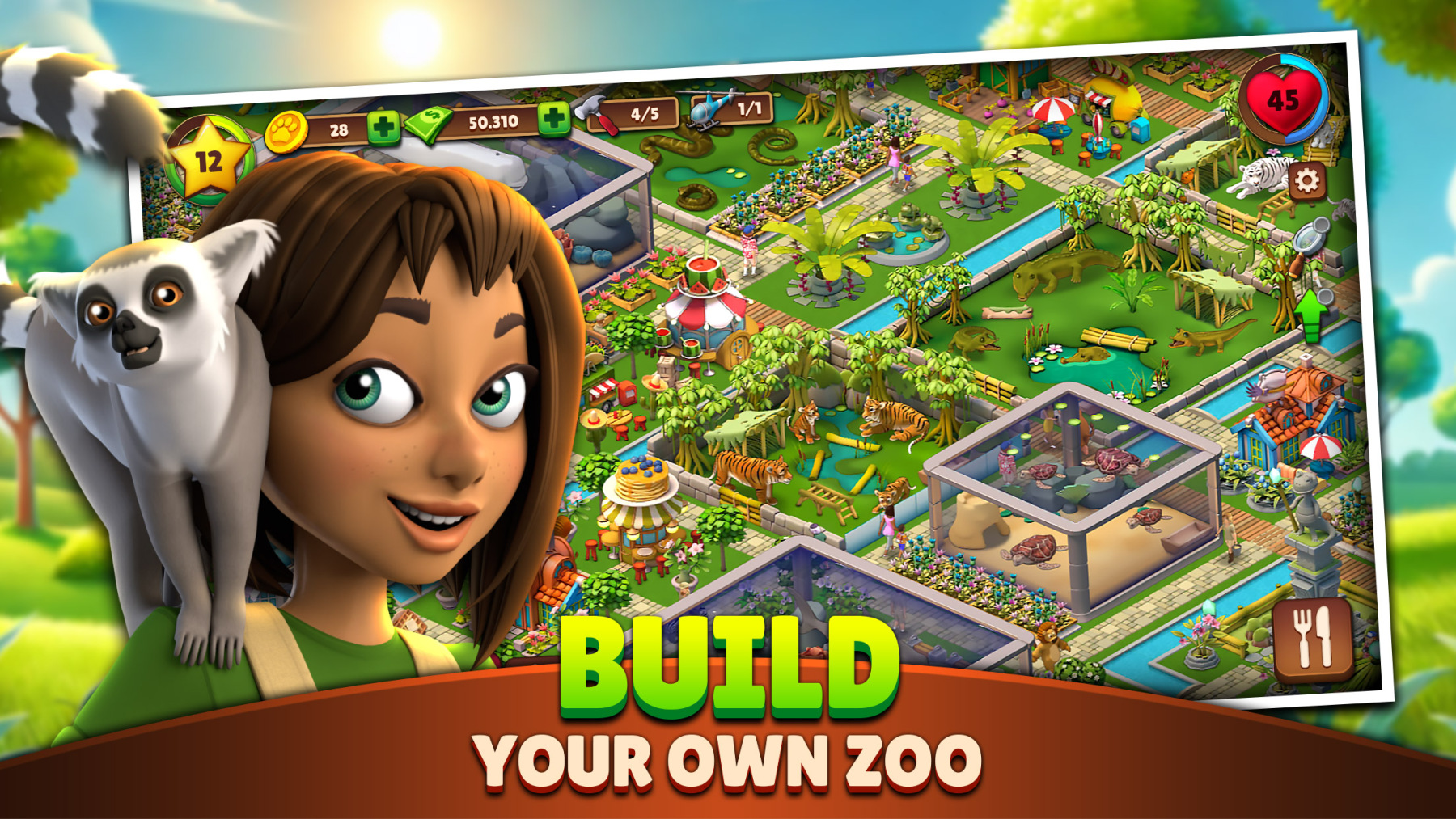 Welcome to Zoo Life, your wildest zoo adventure starts now! Build your dream zoo filled with exotic habitats and over 120 different animals species from around the world. Decorate, care, breed cute babies, and join exciting events.